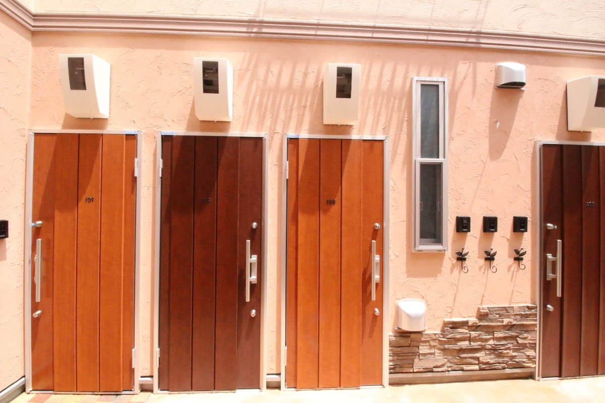全22世帯の集合住宅は、門から一歩足を踏み入れれば、まるでプロヴァンスの街にいるような気持ちにさせてくれます。傘立てにも鋳物を使用したり、フラワーボックスを使用するなど、細部までプロヴァンスにこだわりました。